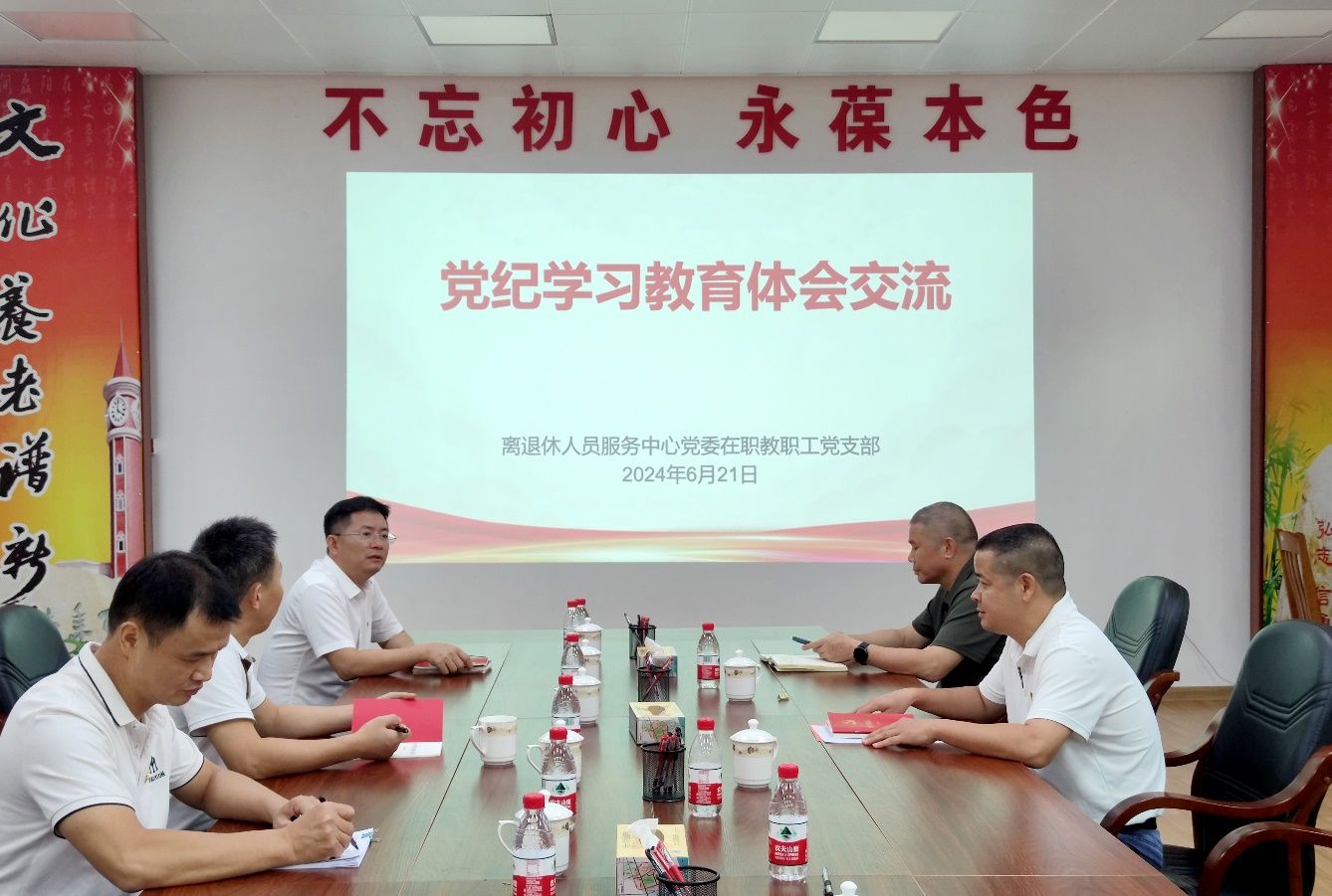 为进一步推进党纪学习教育走深走实,切实强化党员干部党纪意识,6月21日上午,离退休人员服务中心在职人员党支部在离退休会议室召开党纪学习教育体会交流会,与会5名党员分别结合离退休工作和个人实际深入交流党纪学习教育的体会认识。会议由离退休人员服务中心在职人员党支部书记刘汉先主持。