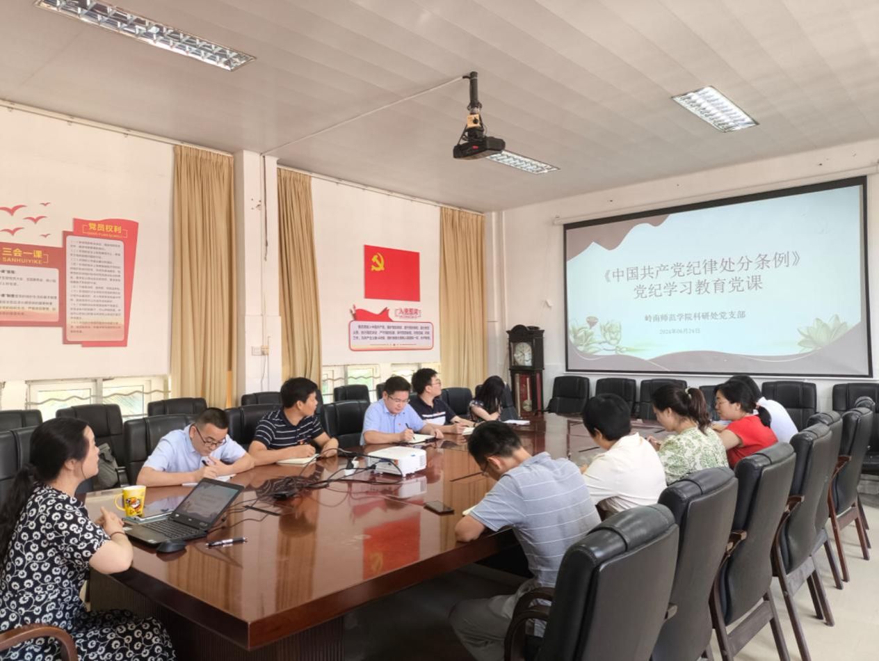 6月24日,科研处党支部组织专题党课,学习《中国共产党纪律处分条例》(以下简称《条例》)。本次党课由支部书记刘群慧主持并授课,科研处全体党员参加。