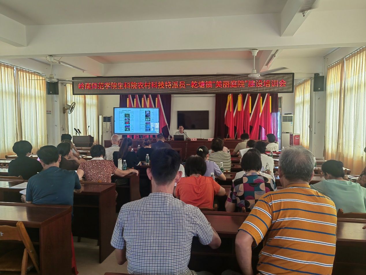 为扎实推进湛江市“美丽庭院”建设,以点带面促进全市宜居宜业和乡村建设,8月23日,生科院农村科技特派员王子凡博士、孙刚老师、李晓菲老师等赴坡头区乾塘镇开展“美丽庭院”建设专题培训及现场教学。乾塘镇副镇长黄小青出席会议并讲话。乾塘镇村干部及“美丽庭院”创建户代表等30余人参加了培训会议。