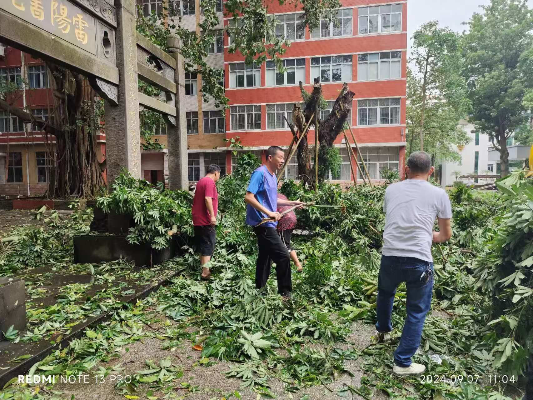 台风“摩羯”肆虐之后,校园里一片狼藉。9月7日上午,风力稍稍减弱,后勤党总支迅速组织在校后勤党员成立校园抗风清障党员突击队,第一时间奔赴燕岭区榕楼广场、日晷广场等区域,协助校园环境管理中心职工清除树木残枝、落叶和垃圾,以尽快恢复校园正常教学、生活秩序,给师生提供安全、整洁的校园环境。