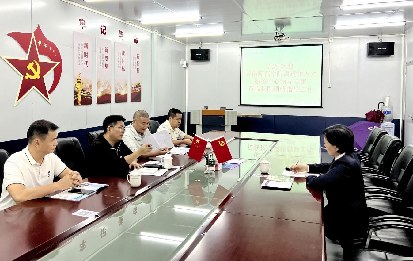 为积极推进学校“为师生办实事”项目,10月29日上午,离退休人员服务中心党委书记、主任欧海清带领副主任叶德波、服务科科长余慧明、综合科副科长刘汉先一行4人到岭南骨科医院参观调研,并专门就医疗VIP服务进行协商洽谈,推进医养绿色通道搭建工作。