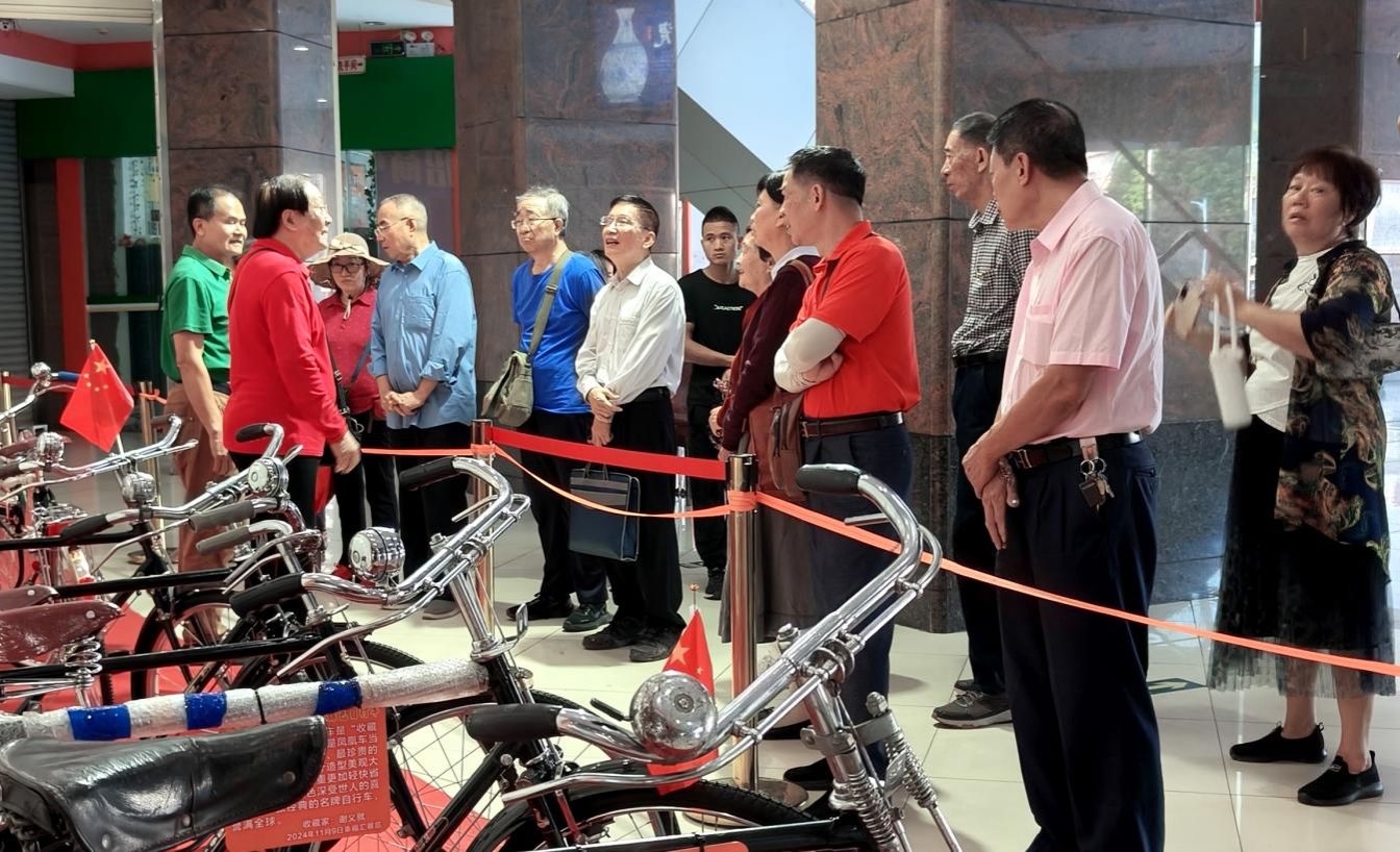 活动现场,老党员们满怀期待地走进这座承载着历史记忆的建筑,开启了一场意义非凡的文化探寻之旅。湛江市收藏家协会副会长、第四党支部党员谢义就老师热情洋溢地向老党员们介绍了他个人多年来收藏自行车的情况。当他指着一辆有着80多年历史的“飞鸽”牌自行车时,老党员们的目光被深深吸引。谢义就意味深长地讲述其来历和背后的故事,这辆自行车不仅是时代的见证者,更是中国工业发展的一个生动缩影。老党员们围聚在自行车前,结合自身经历,近距离欣赏和感受着自行车所蕴含的历史韵味,不禁纷纷感叹岁月的变迁以及国家在工业等领域取得的巨大进步。从过去的自行车时代,到如今新能源汽车的蓬勃发展,这一交通工具的变革,深刻反映了我国经济社会的飞速发展,体现了我国在科技、工业等方面不断创新、勇于探索的精神,也正是党的正确领导下,我国坚持改革开放、推进中国式现代化的有力体现。