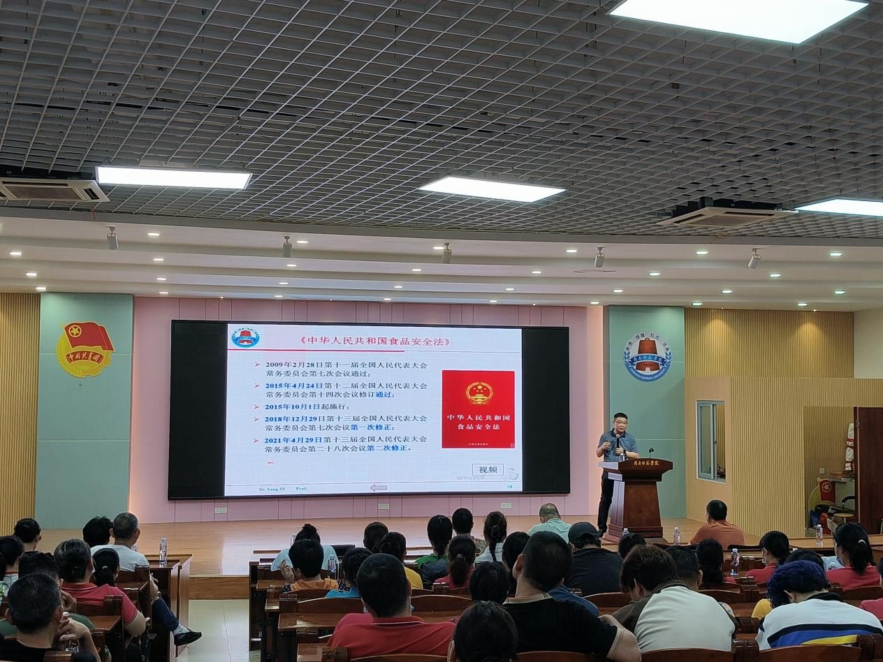 为进一步加强学校食堂食品安全管理,提升饮食中心全体员工的食品安全意识与风险防范能力,4月16日晚,后勤党总支第二支部精心组织了一场面向全体员工的食品安全培训活动。此次培训特别邀请了学校食品科学与工程学院的杨胜远教授进行“食品安全的常见危害因素及预防控制”讲课。培训由支部组织委员周岳良主持,支部书记陈奕鹏、宣传委员罗妙及饮食中心近200名员工参加。