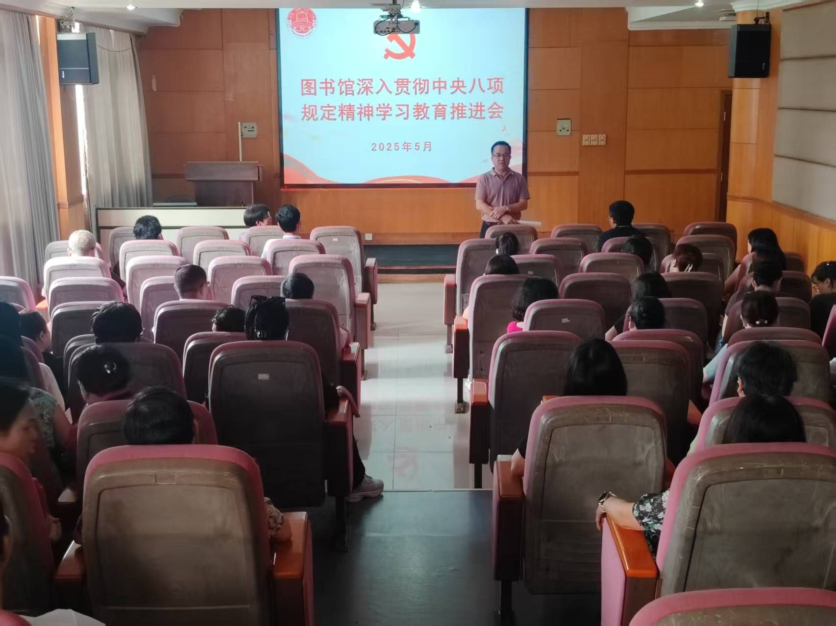 为进一步强化纪律意识,深化作风建设,5月7日,图书馆召开深入贯彻中央八项规定精神学习教育推进会,组织全体馆员开展专题学习,集中观看微党课《锲而不舍落实中央八项规定精神》,推动全面从严治党要求落地见效。