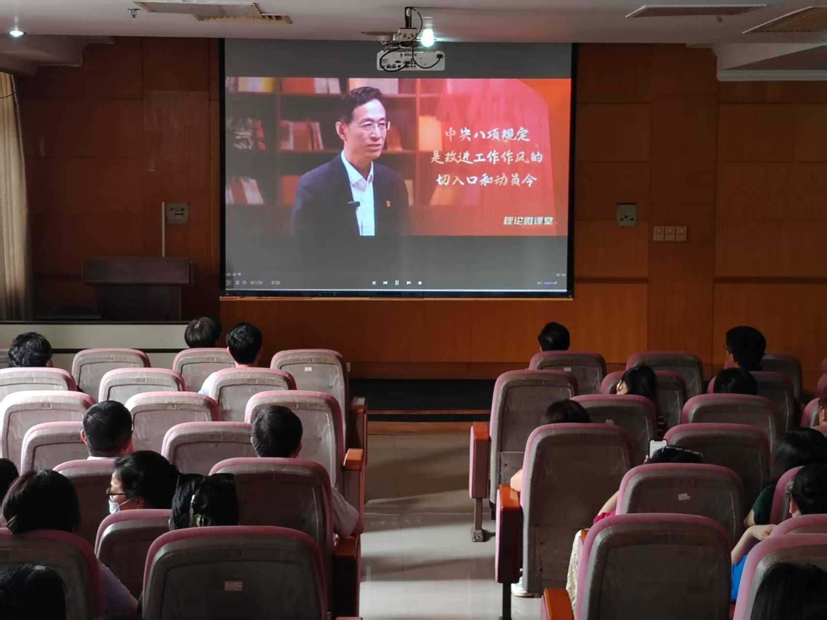 集中观看微党课《锲而不舍落实中央八项规定精神》现场
