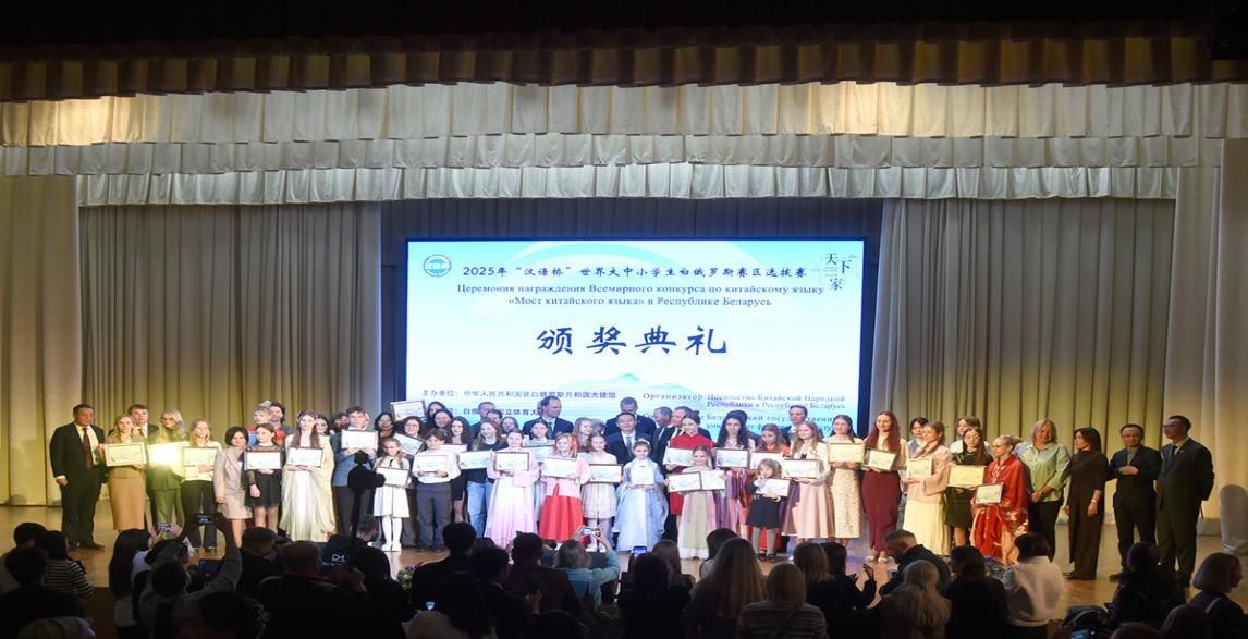 近日,第二十四届“汉语桥”世界大学生中文比赛、十八届“汉语桥”世界中学生中文比赛、第五届“汉语桥”世界小学生中文秀白俄罗斯赛区选拔赛在明斯克圆满落幕,颁奖典礼在白俄罗斯国立体育大学主楼礼堂举行,由岭南师范学院与白俄罗斯国立体育大学合作举办的孔子学院承办(以下简称“白体大孔院”)。中国驻白俄罗斯特命全权大使张汶川、白俄罗斯教育部第一副部长巴哈诺维奇·亚历山大、白俄罗斯国立体育大学等十余所重点高校的校领导以及在白俄罗斯的九家孔子学院及课堂中外方院长应邀出席,共襄盛会。典礼现场嘉宾云集、气氛热烈,彰显了“汉语桥”品牌在白俄罗斯的广泛影响力。