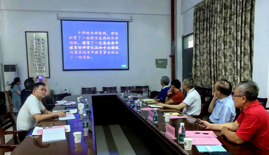 华南师范大学老年大学常务副校长丁时进简要介绍了的华师退休教工协会和老年大学的管理机制等总体情况。副校长贺浪萍详细介绍了华师老年大学的办学历史、办学规模、招生管理、课程设置、团队建设、教学管理等,以及开展老年教育工作的经验做法。