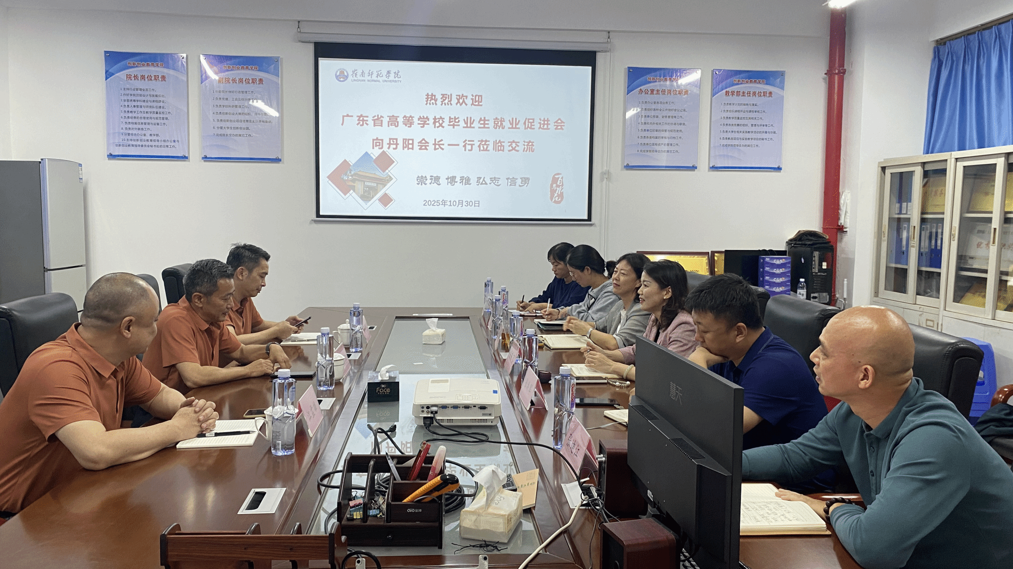 10月30日下午,广东省高等学校毕业生就业促进会(以下简称“高就会”)向丹阳常务副会长率队莅临我校创新创业教育学院指导大学生创新创业工作,创新创业教育学院副院长梁燕飞主持座谈会。