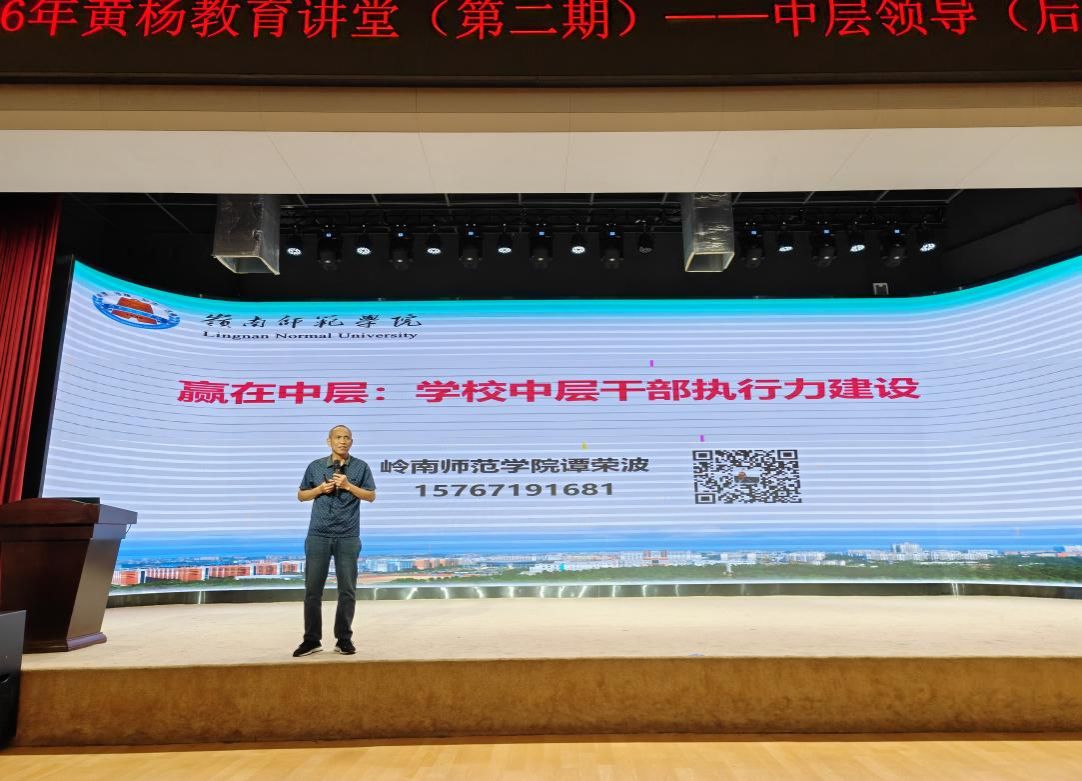 在富山中心学校,谭荣波教授为全区中小学中层干部及后备力量讲授《赢在中层:学校中层干部执行力建设》。讲座直面中层“中艰”困境,明确其“学校治理‘腰’与‘桥’”的定位。谭教授聚焦实战,传授战略解码、团队管理等五大核心能力,并配套“任务拆解五步法”等实操工具,为中层从“业务尖子”向“管理骨干”转型提供清晰路径。