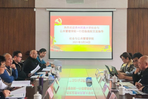 3月24日,贵州民族大学社会与公共管理学院王国勇、杨胜勇、毛刚强等专家教授一行到我校社管学院参观交流。双方在弘雷楼大会议室举行座谈会,社管学院党委冯亮如书记、张勇副院长(主持)与教师代表参加了此次座谈会。