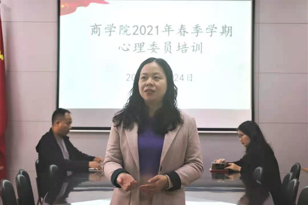 3月24日,商学院于燕雷楼三楼会议室召开2021年春季学期心理委员培训会议。商学院党委副书记李春霞、学工办副主任梁康建、辅导员钟灵老师出席本次会议。
