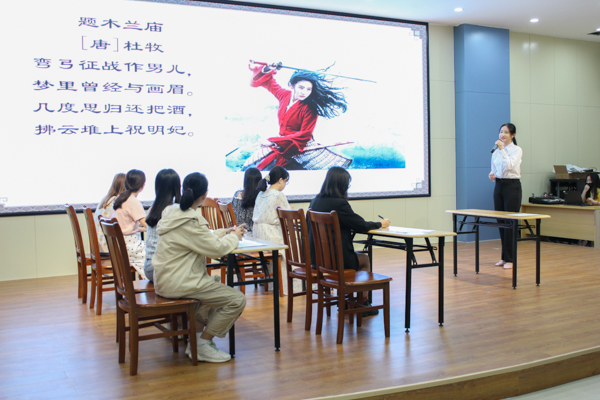 总结会上,2017级实习生黄欣榆、杨丽烨、曾钰淇分别上了《木兰辞》、《孔雀东南飞》和《拟行路难》三节汇报课,受到与会者的高度肯定,会场掌声阵阵。湛江二中港城中学副校长,正高级语文特级教师田飞虎对汇报课作了精彩点评。