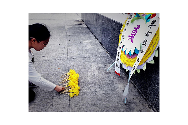 丰碑永铭忠魂,浩气长存天地。在庄严的纪念碑下,地科院朗诵队齐声朗读诗篇《致敬英雄》,在场人员瞻仰烈士纪念碑,共同献上由学院师生一同设计、手工制的花圈和纸菊花,祭奠革命烈士。