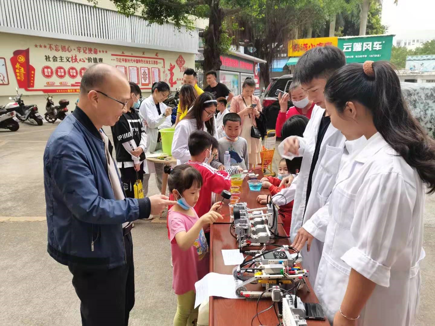 参加本次活动的有物理学院党委副书记梁伟民、主任寸金街道党工委委员,办事处副主任黄真竖、寸金社区党支部书记,居委会主任梁红丽,以及物理学院19级科学教育学生、团委工作人员和社区居民们。