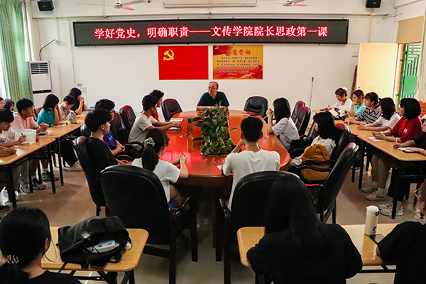 3月31日下午,文学与传媒学院于弘雷楼四楼会议室开展党史主题院长思政第一课。文传院院长阎开振参加活动并作讲话,活动由林苏红老师主持,20级中本三班和网媒班60位学生到场同上思政第一课。