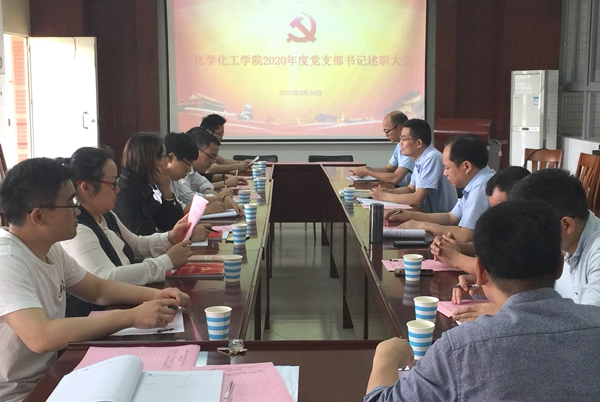 3月30日上午,化学化工学院在燕雷楼学院会议室召开2020年度党支部书记述职大会。学院十个党支部的书记分别从履职主要情况、存在问题、下一步工作打算等几方面依次述职。