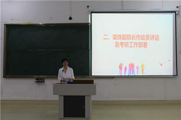 栾姝指出学院近年考研工作部署,她展示了三个方面的部署工作,让我们能更加全面的了解考研工作。她介绍了关于学校以及学院方面的考研情况,具体的分析现今情形,给同学们展开了一条明媚的道路建设。她介绍本学院的具体情况,增强了大家的考研信心以及对美好未来的期待。