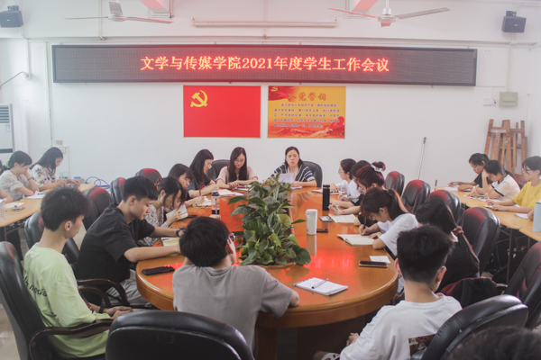 4月8日中午,文传学院于弘雷楼四楼会议室召开2021年度学生工作会议。文传学院党委副书记梁碧斐,学工办辅导员老师林苏红、袁文艳、李诗欣、梁海珍,文传各大机构及班级的主要负责人代表出席了本次会议。
