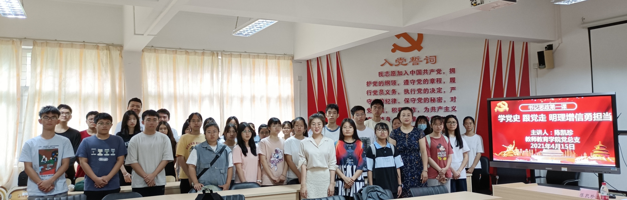 为了贯彻落实学校关于2021年春季学期校院党政主要领导上第一堂思政课工作的精神,15日上午在榕楼207室,师教院党总支书记陈凯珍为2020级学生上思政第一课。