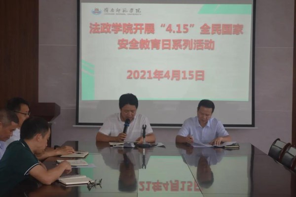 在组织活动过程中,学院党政领导高度重视此次宣传活动,亲自部署、亲自参与。加强宣传教育,召开党政例会、教职工大会、各专业教学系会议、学生班会传达文件通知和宣传教育;利用微信群、qq工作群进行转发宣传;学院宣传中心制作《法政学院关于开展2021年“4·15”全民国家安全教育日系列活动的通知》专题推文,等等,通过各种方式和途径,认真组织师生开展“4·15”全民国家安全教育日系列活动的宣传教育。落实主体责任,由学院办公室负责教工、学工办负责学生,各教学专业系、各党支部书记负责督导落实,并将完成落实观看“国家安全”教育短片、调查问卷,和关注“中国反邪教”微信公众号、参与线上签名、知识答题等活动后,在微信交流群上接龙,确保全院师生人人参与,落实到位。