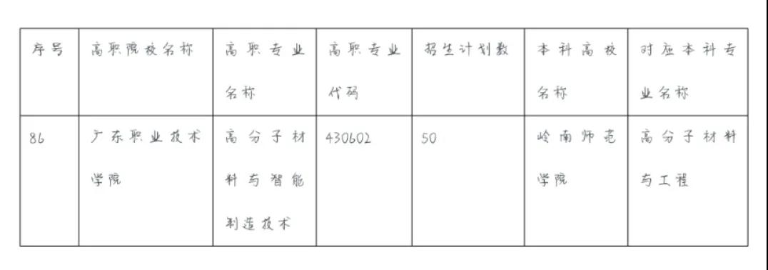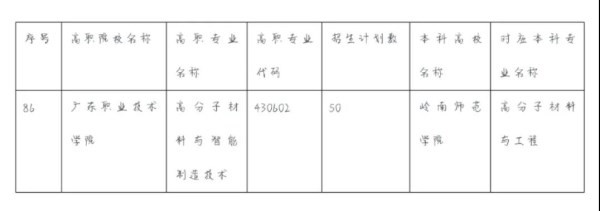 为贯彻落实《国家职业教育改革实施方案》(国发〔2019〕4号)和《广东省职业教育“扩容、提质、强服务”三年行动计划(2019-2021年)》(粤府办〔2019〕4号),广东省教育厅近日组织开展2021年高职院校和本科高校协同育人试点确定工作。化学化工学院高分子材料与工程专业获批与广东职业技术学院高分子材料与智能制造技术专业新增三二分段专升本协同育人试点。