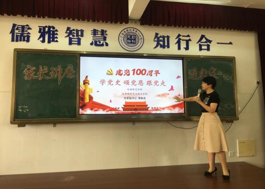 4月27日,岭南师范学院生命科学与技术学院党委、分工会联合湛江市第八小学举办以“学党史、颂党恩、跟党走”为主题的“巾帼心向党,奋斗新征程”党史宣讲进校园活动。本次活动在湛江市第八小学会议室举行,由生科院党委副书记、工会主席覃静君担任主讲人,生科院红嘴鸥学生党支部书记、团委指导老师林颂迪主持,八小体卫艺处陈琼芬副主任、大学生党员代表、湛江市第八小学学生、教师和家长代表参加活动。