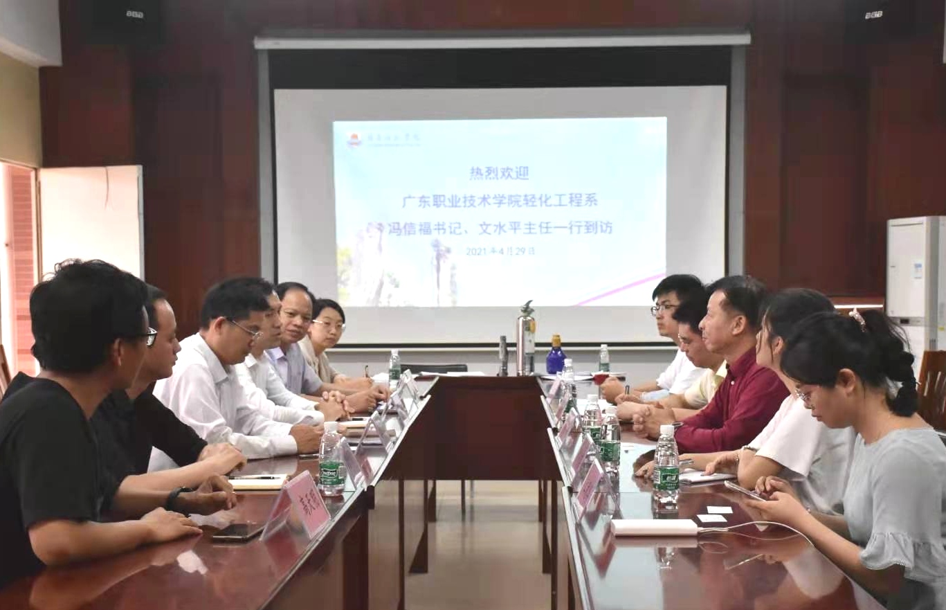 近日,广东职业技术学院轻化工程系党总支书记冯信福、系主任文水平等一行五人到访化学化工学院,就高分子材料工程专业三二分段人才培养、校企合作等议题进行深入洽谈交流。学院领导班子成员及系主任、辅导员代表参加会议。