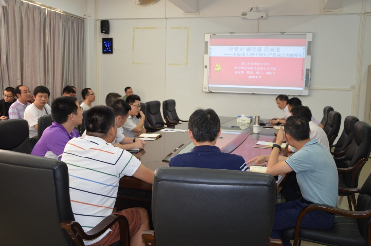 5月7日下午,网信中心党总支召开党史学习教育宣讲活动,邀请了学校党委党史学习教育宣讲团成员、马克思主义学院副院长施保国教授宣讲“学党史 感党恩 促奋进——庆祝伟大的中国共产党成立100周年”。