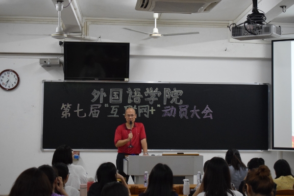 5月7日晚上,外国语学院在教三609室举行了第七届“互联网+”大赛动员大会。出席人员有外国语学院党委副书记杨建伟、全体辅导员以及18、19、20级全体班长和权益委员。
