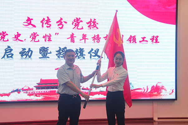 文传学院柯春明书记强调:“在中国共产党成立100周年的重要节点,文学与传媒学院分党校积极响应党中央学习党史的号召,通过发展对象与新党员培训,动员广大青年大学生回顾党史,学党史、悟思想、办实事、开新局,以优异成绩迎接建党一百周年。我们今天启动‘党员.党史.党性’青年榜样引领工程,是为了更好地讲好优秀党员的故事,讲好中共党史的故事,讲好身边的榜样故事,积极推动青年党员发挥榜样引领作用,以自身优秀的品格去影响更多的人。”随后柯书记授旗给青年党员代表赵瑞美同志,并进入“党员.党史.党性”青年榜样引领工程之红色星辉分享环节。
