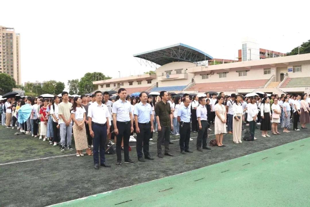 为营造爱国主义教育氛围,全面“学党史、强信念、跟党走”,5月10日清晨,迎着朝阳,化学化工学院全体师生于雷阳区田径场参加学期中升旗仪式。