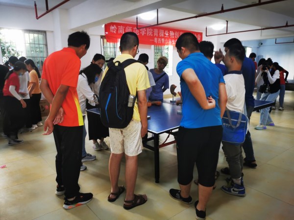 2021年5月9日下午,在广东省陈振晓科技教育名师工作室于湛江市特殊教育学校开展的科创教研讨实践活动中,由岭南师范学院粤西青少年生命科技创客体验中心、青稞生物创客教育协会及青稞红旅实践队师生志愿者组成的岭师科普创客教育团队在湛江市特殊教育学校开展盲童生物模型探索、听障学生显微镜观察和叶拓等等校园科技展示活动。岭南师范学院生科院陈蓉老师带队参加活动并指导工作。生科院红嘴鸥学生党支部书记林颂迪及部分学生党员也前往活动现场参与本次活动。