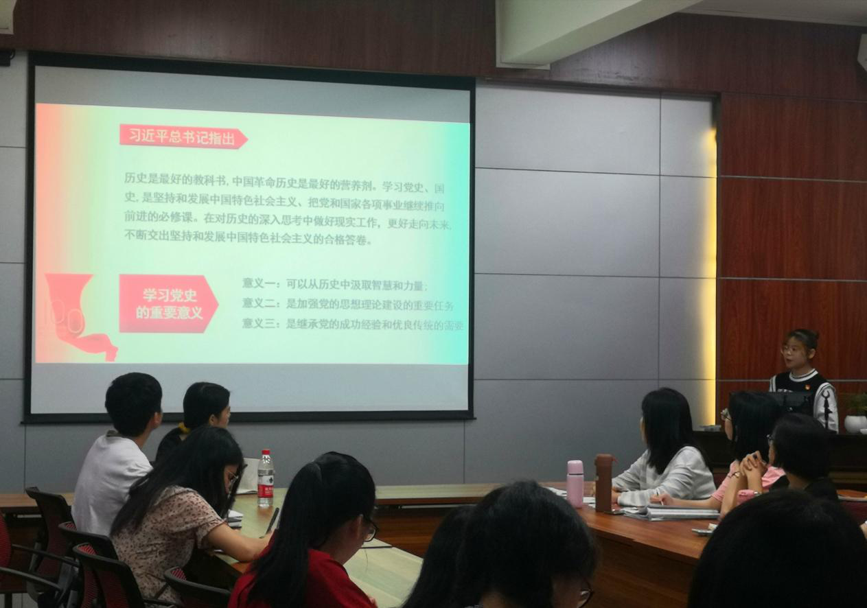 李水清向同学们分享了学习党史的心得,“了解过去的历史,才能正确认识中国特色,正确认识时代责任和历史使命”,她认为每一次的党史学习教育都是一次审视自身入党动机的机会,是端正自身态度,明确自身使命的机会,让我们不忘初心,牢记使命。在了解党史,熟读党史后,更能激励我们勇于克服前进路上的艰难险阻,用更高的标准要求自己以求取进步,不断提升自身素质,向优秀党员靠拢。同时,她也告诫学生党员们切勿以狭隘和偏激的眼光看问题,要积极主动学习,不断提高增强政治理论素养,尽好一名党员应有的职责。