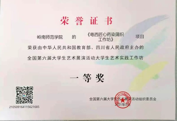 “产品富有地域特色风情,把普通的原材料变废为宝,融合岭南文化元素,打造时尚艺术风格,用工艺之美点亮生活。”5月13日,全国第六届大学生艺术展(以下简称“大艺展”)在四川成都落下帷幕,美术与设计学院的沈晶照、谭永定老师指导的“粤西匠心药染蒲织艺术工作坊”作为全国43个入围参展的工作坊之一“惊艳”亮相,并荣获本次展示活动的一等奖!