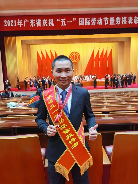 谈及毕业后的工作历程。黄志荣表示,2008年大学毕业时,在多数同学疑惑的眼光中他选择了在家乡工作,当时产品设计在当地可谓是一片空白,但他坚信不管在何地工作,只要找准定位努力拼搏就能出成绩。他毕业后13年一心扎根于云浮广东凌丰集团股份有限公司工作,兢兢业业,虚心请教,留心学习各种工作技能,踏踏实实做事,又不乏创新实用的想法。在实际工作中,他很好地把大学里面的工业设计概念带到企业并与企业严谨的工作态度有机地结合,传播先进的研发理念,探索出一条基于严谨分析的行之有效的产品研发之路,用实力一次次刷新自己的记录。经过不懈努力及漫长的改进,他成功研发了到达国际先进水平的多款产品,荣获了“中国创新设计红星奖”银奖和“首届中国优秀工业设计奖”金奖等荣誉称号。他用辛苦的汗水研发出一个又一个的适销对路的产品,研发出一个又一个得到国际设计届认可的产品,他用事实证明只要工匠精神,不断锤炼,在山区也能成就国际设计师,在平凡的工作中取得了不平凡的业绩。