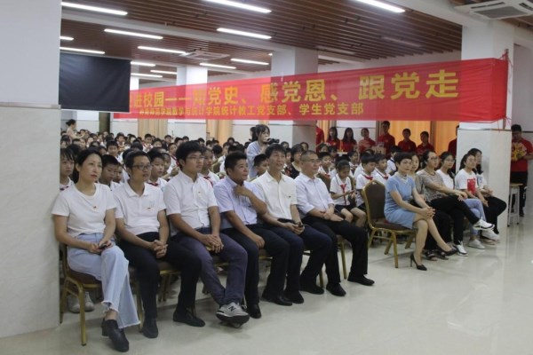 “中国共产党是哪一年正式成立?”,“我知道, 我知道, 1921!,1921!”,“今年是中国共产党成立多少周年?”,“100周年!”……5月12日下午,岭南师范学院数计学院统计系教工党支部携手学生党支部前往湛江一中金沙湾学校开展主题为“知党史、感党恩、跟党走”的党史进校园活动。统计系教工党支部及数计学院学生党支部全体党员、湛江一中金沙湾学校相关领导以及四年级全体师生参加了本次活动。