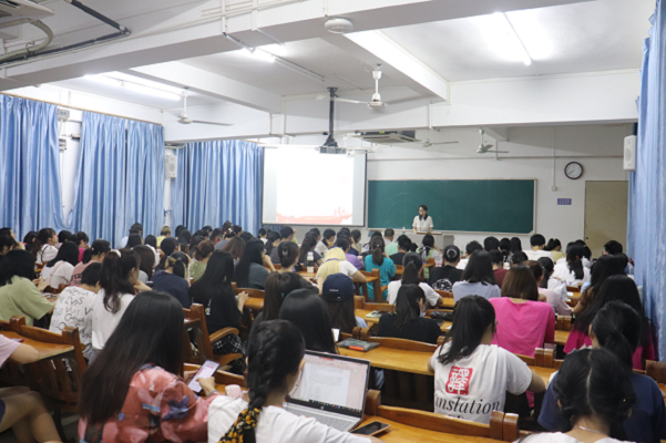 5月19日晚上,外国语学院在教三206召开了2019级考研动员大会。参加人员是19级商英、翻译专业全体同学。本次动员会由外国语学院党委书记陈永国主讲、副院长曹耀萍主持,特邀嘉宾有陈采芬、张嘉嘉和陈玉萍。