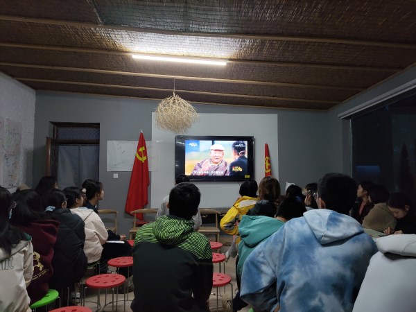 5月14日,地科院2019级地理科学专业赴内蒙古地理实习途中,开展“学党史、悟思想”学习教育交流活动,师生一同观看了央视一套《国家的孩子》视频,一起学习党员都贵玛的先进事迹。