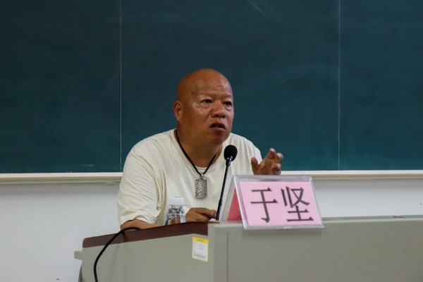 讲座接近尾声之际,文传学院赵金钟教授对整场讲座做了点评总结。赵金钟对于坚“世间一切皆诗,诗就在生活中”的观点极为赞同,并大力肯定了于坚重视文字与传统的理念,最后他总结说,于坚的讲座主题鲜明,贯穿始终,整场讲座流畅通达,使人受益匪浅。