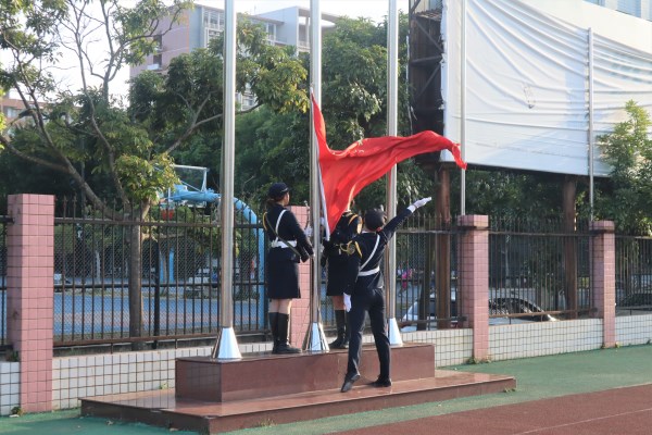 国歌奏乐完毕,升国旗仪式结束,新的一天就此开始。五星红旗迎着朝阳,鲜艳夺目,期待同学们也能在阳光的普照下奋发有为,砥砺前行,在学习中信心百倍,求真务实,志存高远,让希望与憧憬展翅飞翔。