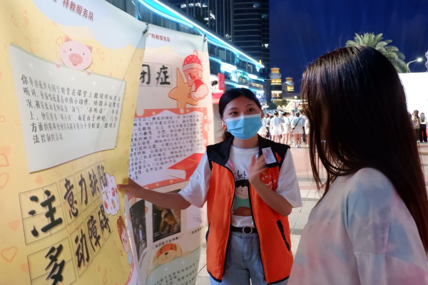5月24日,岭南师范学院心理系与特殊教育系联合学生党支部全体党员以党员志愿者的身份参加了由湛江市残联与岭南师范学院“3+2”特教服务队在金沙湾丽悦新天广场联合主办的特殊教育宣导活动。