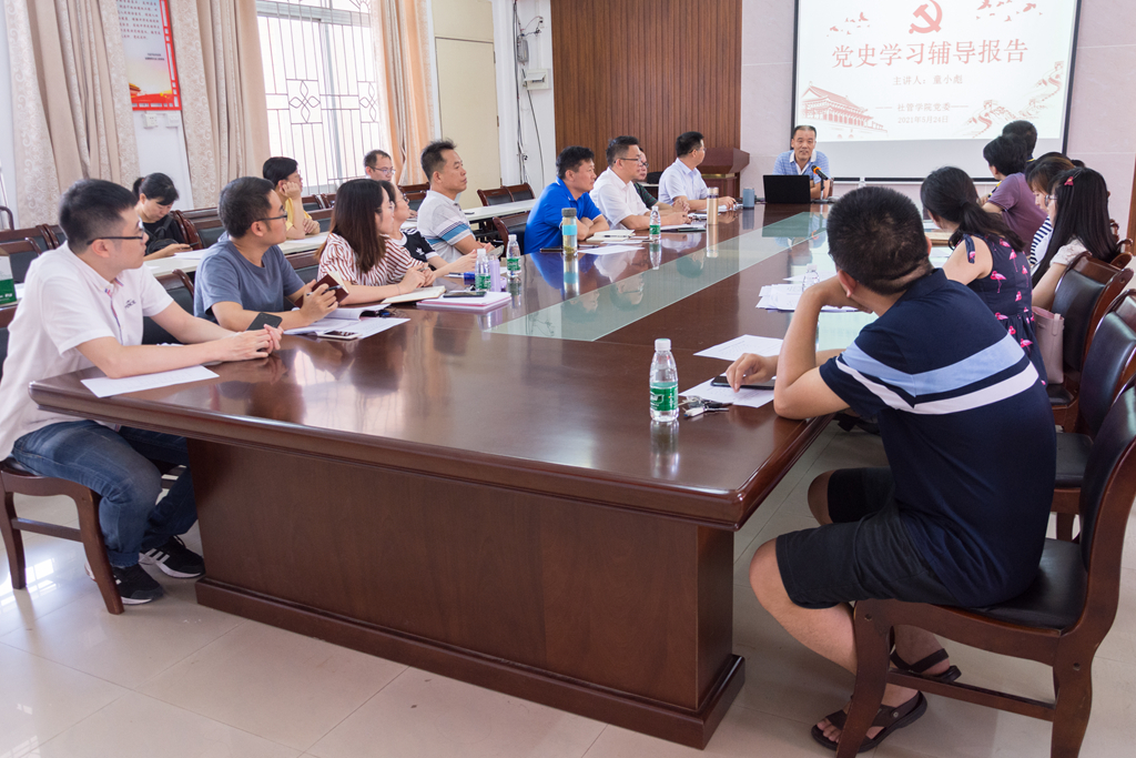 5月24日,社管学院邀请我校马克思主义学院教授、纪念文化研究所所长童小彪教授于弘雷楼大会议室开展党史学习教育辅导报告会议。我院党委冯亮如书记、张勇副院长(主持全面)、黄剑副院长、正处级辅导员钟明杰以及教职工代表参加了本次会议,会议由冯亮如书记主持。