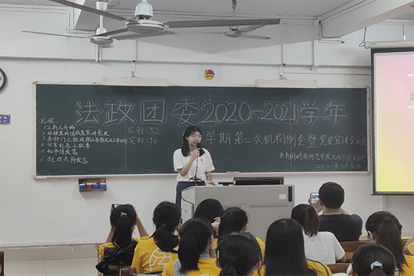 6月5日晚,法政学院团委开展党史学习教育,诚邀校大学生“培根”宣讲团成员郑沛欣进行党史宣讲,旨在推动法政学院团委学生干部深入学习领会习近平新时代中国特色社会主义思想,更好总结历史、认识历史规律、掌握历史主动。