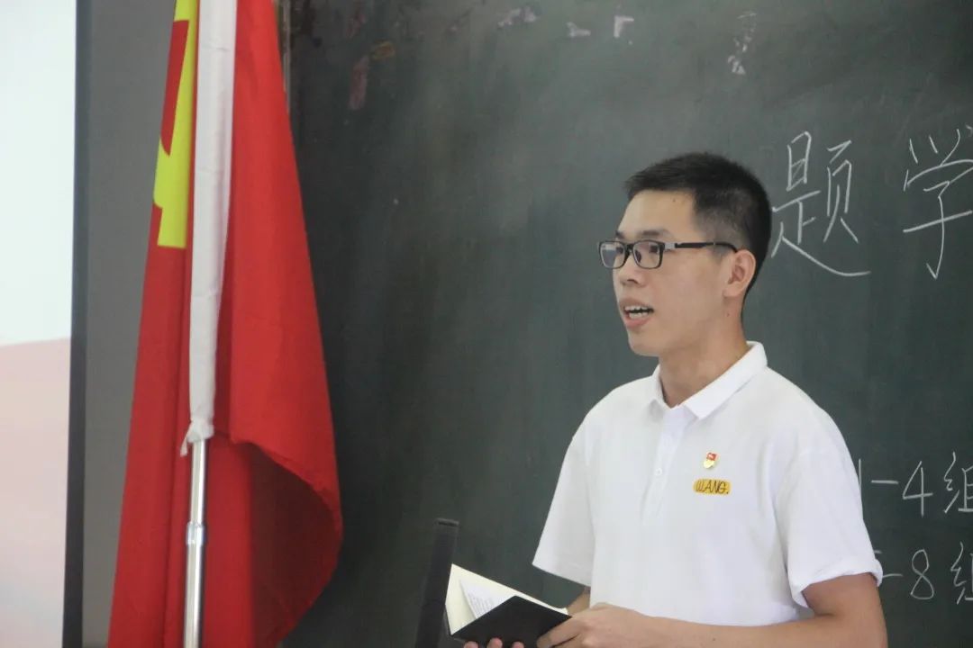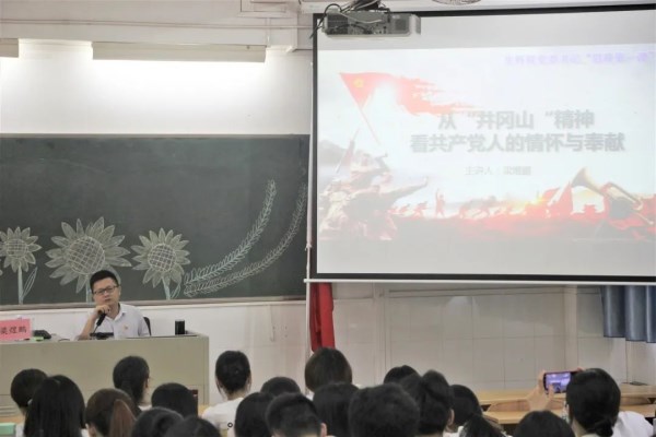 梁煜鹏讲授《从“井冈山”精神看共产党人的情怀与奉献》党课。他将井冈山的革命斗争史分为创立根据地、巩固和发展根据地、坚持井冈山斗争三个阶段,详细介绍了曾志和伍若兰等两位革命先辈的感人事迹。梁煜鹏指出,井冈山精神主要包括:关心群众、依靠群众、不怕牺牲、勇于胜利、实事求是、敢闯新路等,作为新时代青年,各位新党员应弘扬井冈山精神,胸怀理想,坚定信念,为人民日益增长的美好生活需要而奋斗。