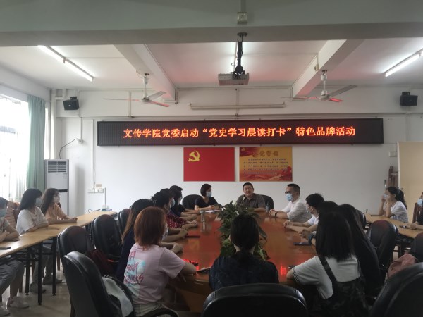 2021年6月8日上午,为扎实开展好党史学习教育,坚持学原著、读原文、悟原理,创新学习方式,文学与传媒学院党委在弘雷楼4楼会议室举行“党史学习教育晨读打卡”特色品牌活动启动仪式。文传学院党委柯春明书记、梁碧斐副书记、组织员林春大老师以及学院学生党员参加了本次启动仪式。本次仪式由林春大老师主持。