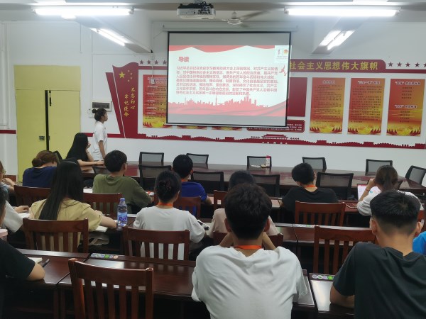 6月12日,为深刻学习习近平总书记在党史学习教育动员大会上的重要讲话,增强道路自信、理论自信、制度自信、文化自信,激发青年学子学社会主义现代化强国史,炼社会主义现代化强国魂,做社会主义现代化强国人,学校“培根”宣讲团成员黄倩萍走进机电工程学院学生会,在第二教学楼401会议室开展了“培根”宣讲活动,参加宣讲活动的有机电工程学院学生会全体工作人员。
