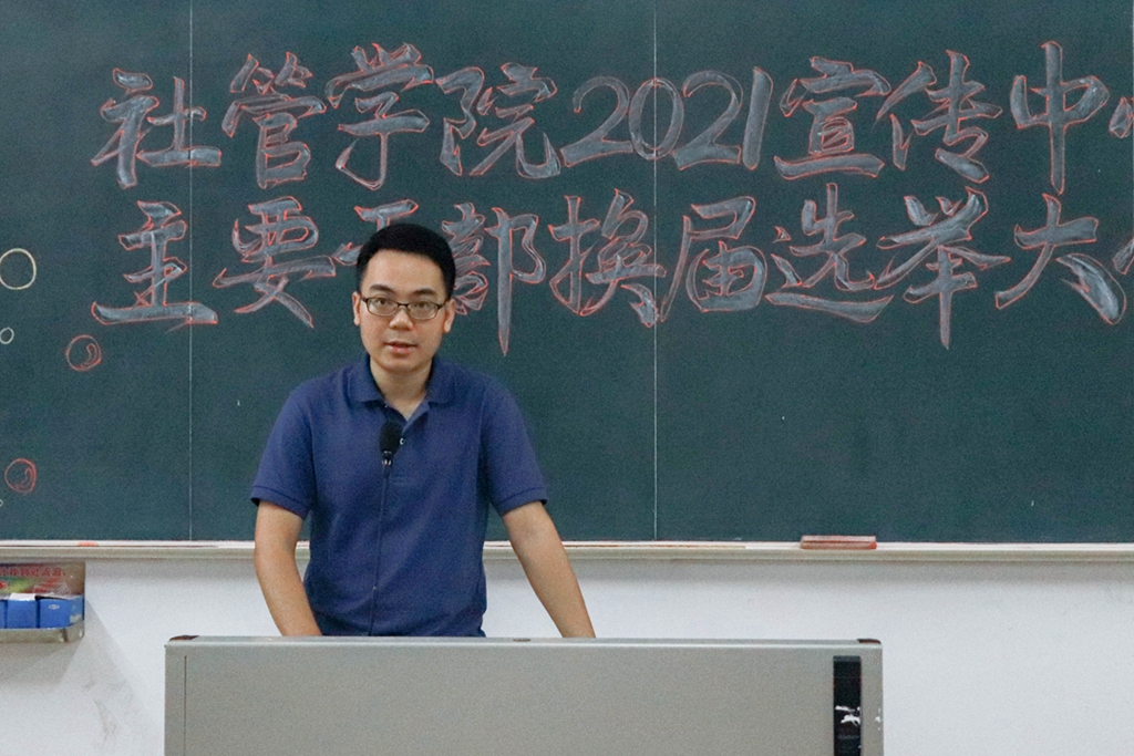 6月13日晚,社管学院宣传中心于弘雷楼202室举办主要干部换届选举会议,辅导员李从来老师以及宣传中心全体工作人员出席了本次会议。