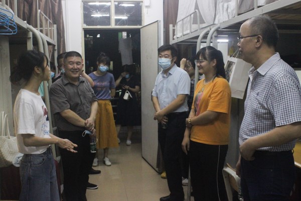 6月21日晚,文学与传媒学院党委书记柯春明、副书记梁碧斐,院长阎开振,副院长朱习文、李斌辉、辅导员林春大、袁文艳一同前往尚雅苑、至善苑对毕业生进行宿舍走访。