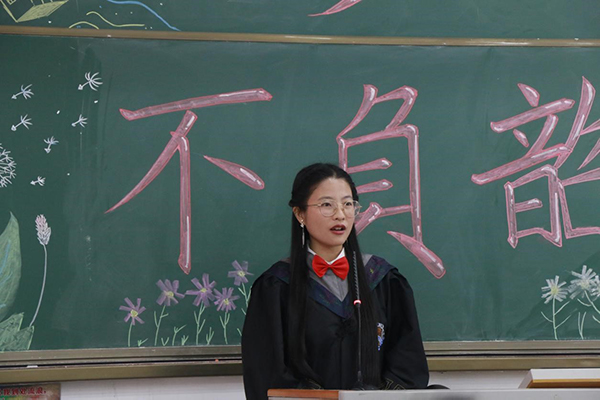 随后,毕业生代表劳月柳上台发言。她感恩道,在大学的求学生涯当中,在老师们的悉心教导下,她不仅掌握了专业的知识,还真切地领悟了“学高为师,身正为范”的师范含义,是老师们的辛苦付出,培育了今天的她和2017级全体毕业生。最后,她祝愿母校越来越好,祝愿地科院的建设更上一层楼,祝愿全体毕业生前程似锦,未来可期!