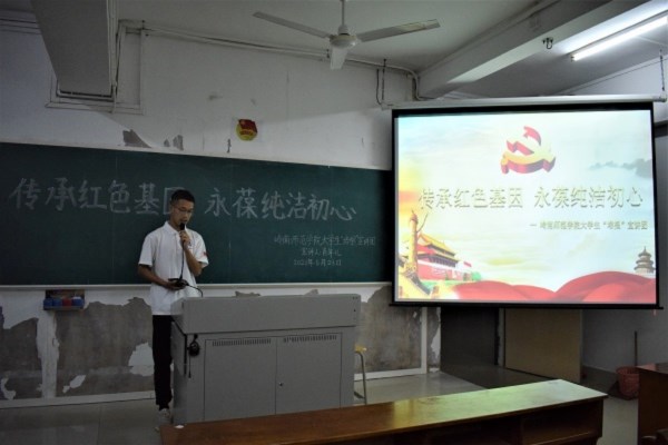6月23日晚上,学校大学生“培根”宣讲团成员肖年儿在教三504室举办以“传承红色基因,永葆纯洁初心”为题的党史宣讲会。外国语学院学生会全体工作人员参加了此次宣讲会。